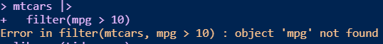 mtcars |>ggplot(aes(x = variable.name, y = variable.name)) +geom_point()