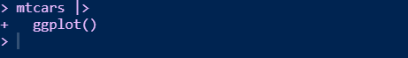 mtcars |>ggplot(aes(x = variable.name, y = variable.name))aes: describe how variables in the data are mapped to your canvas