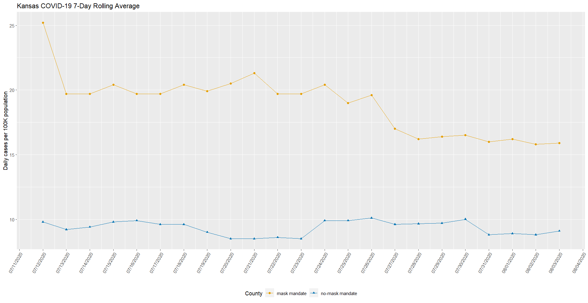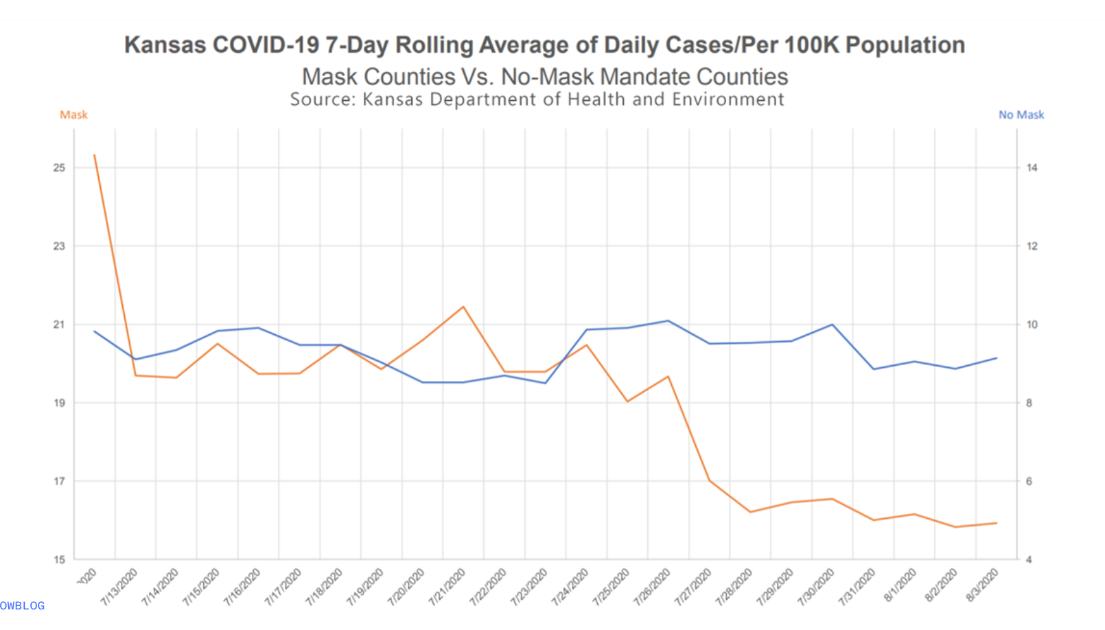 What is misleading about the following two visualizations (from here) that are presented together to show the trajectory of COVID?